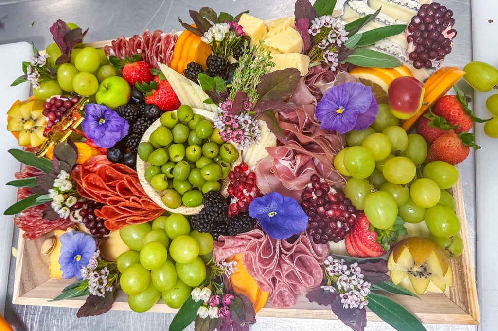 All options feature an assortment of premium cheese and charcuterie, as well as a variety of fresh fruit, nuts, and complimentary accouterments. All boxes, plates, and platters are compostable or reusable, depending on your selection.